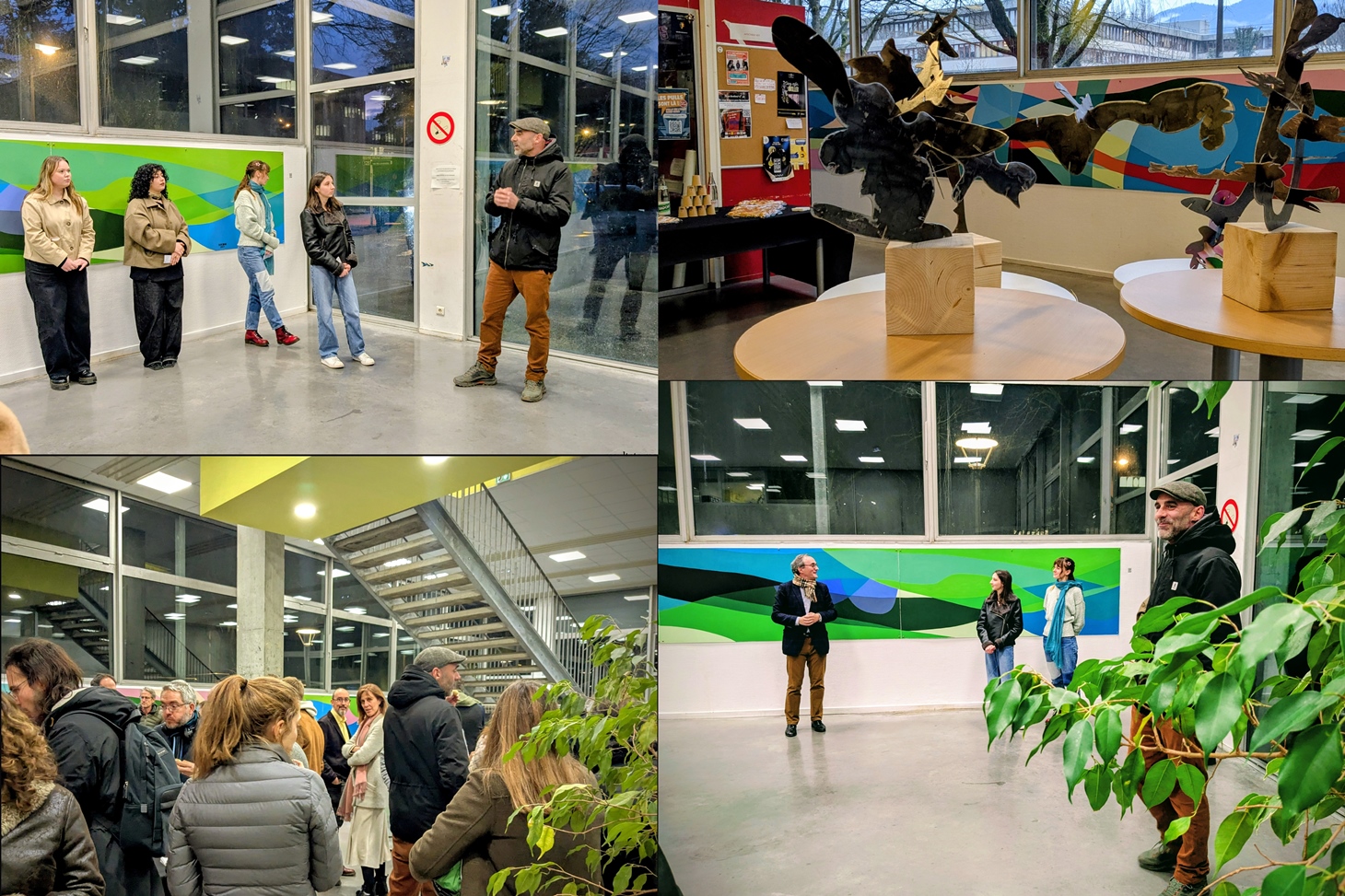 Accompagné de quatre de nos étudiantes d’histoire de l’art qui ont assuré avec brio la médiation (Nina Adamiak , Olivia Debugny, Nina Cheghol et Arcana Clette) , NKDM nous a présenté « L’élan », fresque murale de 22*1 m, installée dans le hall de notre UFR.